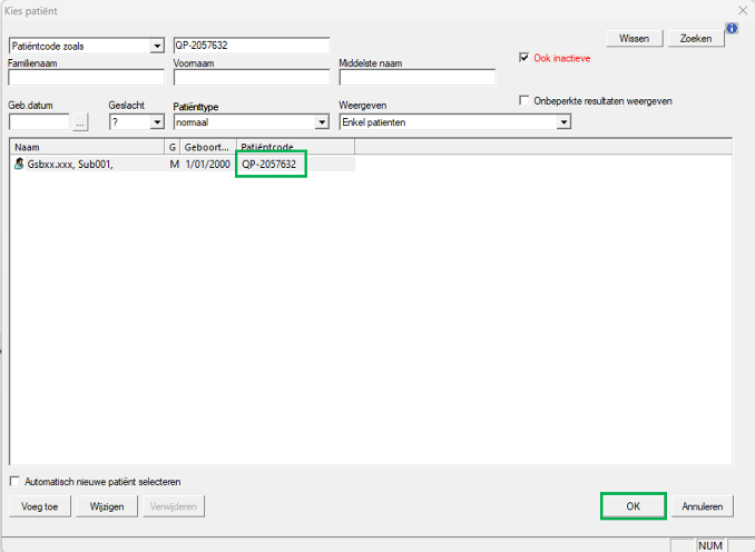 Remark: If a QP number has already been generated in the past fort his participant but you cannot find it in your administration, enter the participant’s name (type GIFMI_STUXXX, SUBJYYY) (green field) and press the tab key. The QP number will be displayed.