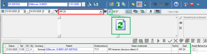 Click on the icon ‘verversen’ (refresh). Your examination is now scheduled in IMPAX® RIS QDoc and will be visible in the scheduler of the MRI scanner. All administration is finished. You can now proceed to the scanner console (partim 4).