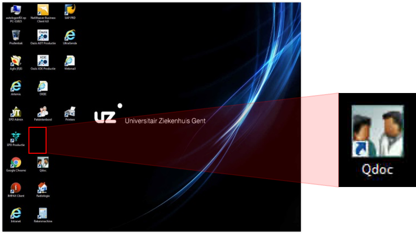2. Double-click on the Desktop on the icon of QDoc for IMPAX®RIS registration. The software is in Dutch.