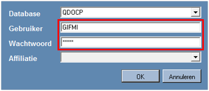 | Gebruiker (User) | GIFMI (all uppercase) |